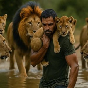 A man rescued a lion cub that was drowning in the river – but just seconds later, he found himself surrounded by an entire pride of lions: He had already said goodbye to life when something completely unexpected happened