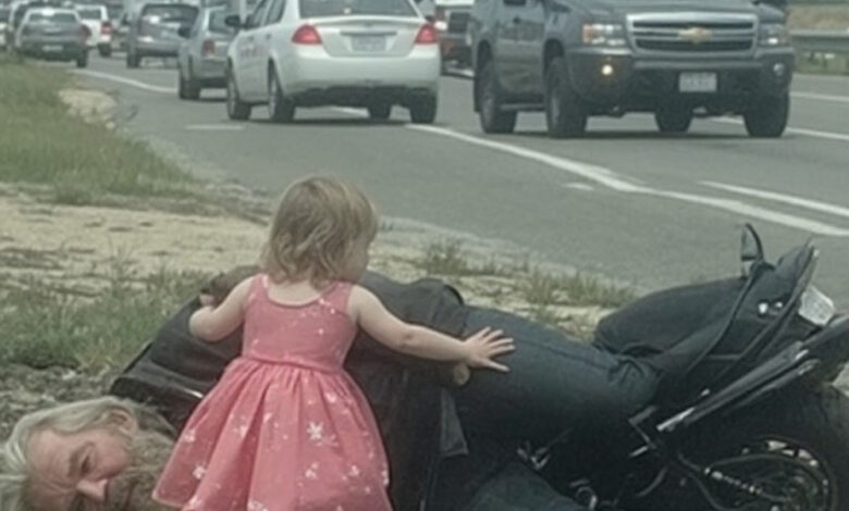 On a cool autumn afternoon along Route 27 near Ashford, traffic moved steadily in its usual rhythm when an unexpected cry came from the backseat of Helen Maren’s car. Her five-year-old daughter, Sophie, dressed in a sparkling princess gown with light-up sneakers flashing at every kick, was overwhelmed with a sense of urgency. Tears filled her eyes as she insisted that “the motorcycle man” was hurt somewhere down the ridge. Helen, initially thinking her daughter was simply tired after a long day at kindergarten, tried to reassure her. From the road, everything seemed perfectly normal—there was no visible accident, no broken glass, no smoke, nothing that would signal a crash. But Sophie grew more insistent, describing a man with a leather jacket and a beard who, she claimed, was badly hurt. Reluctantly, Helen pulled the car onto the shoulder, uncertain of what she would find but unwilling to ignore her child’s pleas.