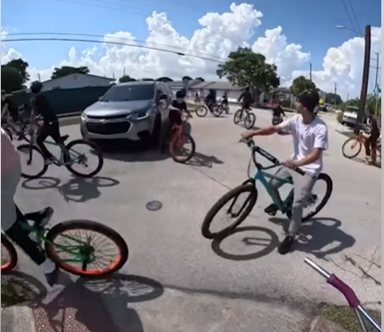 The now-viral footage shows several teenagers pedaling at a leisurely pace along a calm residential road. Laughter and casual conversation filled the moment until a silver Chevrolet SUV abruptly stopped in front of them. Without warning, the driver’s side door swung open and an officer stepped out. The officer’s attention immediately fixed on one boy riding in the group. Within seconds, the teen was knocked off his bike and thrown to the pavement, a scene that left both the other riders and later viewers stunned. The video spread rapidly, generating millions of views across social media platforms and drawing intense reactions from the public.