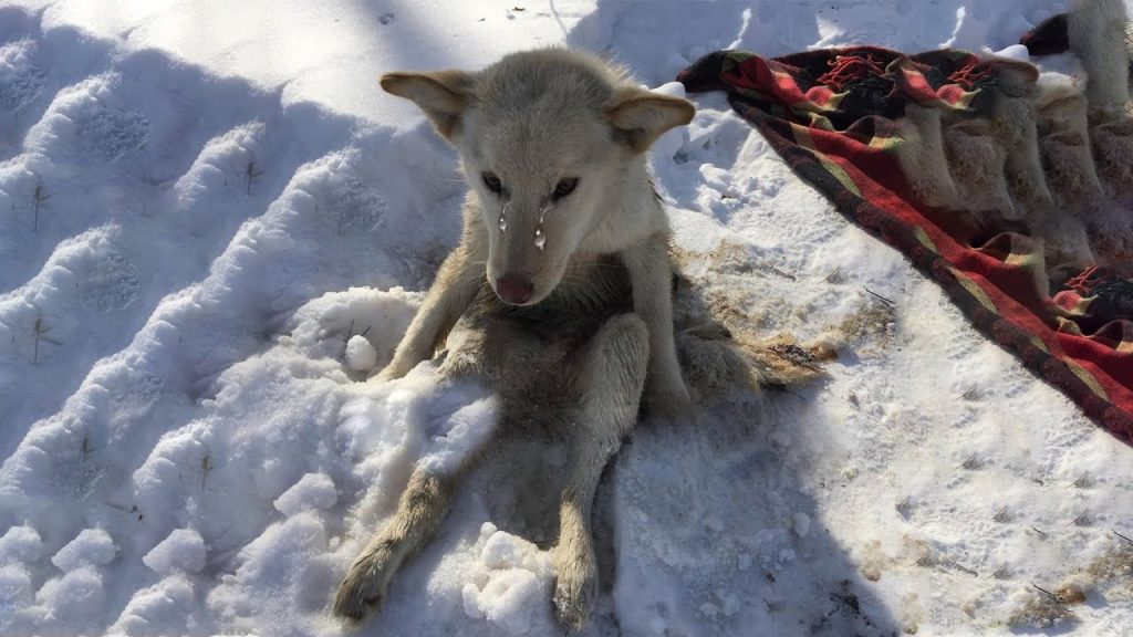 Under the pale gray sky of a freezing winter morning, a small dog named Lunka lay trembling in the snow. His thin body was covered in bruises, and his fur was matted with dirt and pain. The cold wind bit into his fragile frame, but even that could not compare to the cruelty he had already endured. He had been kicked, beaten, and left to face the biting chill of winter alone. His spirit was fading, and for a moment, it seemed as though this little soul might quietly slip away, unnoticed by the world.