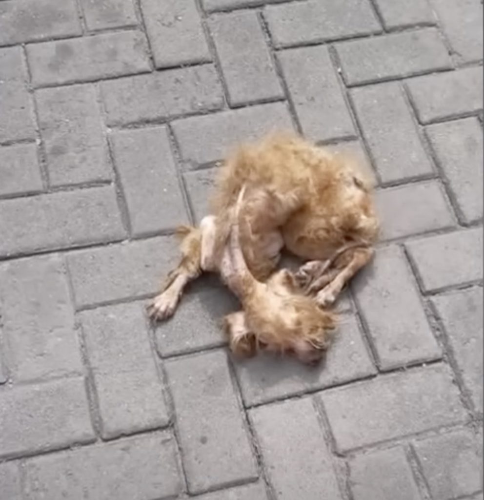 In a quiet neighborhood where the sound of birds usually marked the start of each morning, a small cardboard box sat unnoticed by the gate of an apartment complex. Inside that box was Kaefsi — a frail, trembling dog whose life had been reduced to a struggle for survival. His body was emaciated, little more than skin and bone, and his fur was so matted that it looked like a thick shell covering his delicate frame. Every inch of him told a story of neglect. Beneath the tangles of hair were scars, dried wounds, and tiny insects crawling on his skin. The sight alone broke the hearts of those who found him. He didn’t bark or even move; he simply looked up with dull, weary eyes that seemed to ask why the world had been so unkind.