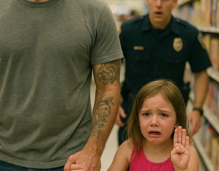 As he made his way toward the produce section, something unusual caught his eye. A little girl, no older than six, wore a pink dress and walked beside a man in a gray shirt who held her hand. To any passerby, the pair would have looked like an ordinary adult and child shopping together. But as Reyes watched them, he noticed the girl slowly raise her hand. All five fingers were extended—then she deliberately folded her thumb into her palm and closed her remaining fingers over it.
