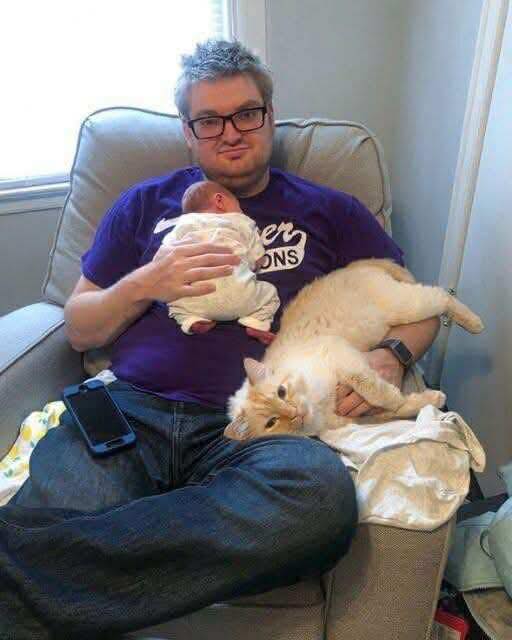 There was Keane, sitting in the armchair by the crib—the same chair he always occupied by the living room window. Only now he had Milo cradled carefully in one arm. His hand gently patted Milo’s back in a soft, consistent rhythm. Sitting contentedly in Keane’s lap was our cat, Mango, looking straight into my eyes as if telling me not to interrupt something important.