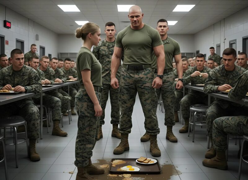 To anyone glancing her way, she looked like just another Marine grabbing breakfast before the day’s demands kicked into full force. Her tray carried the usual morning fare—eggs dried slightly at the edges, toast browned past ideal, coffee strong enough to wake an entire barracks, and a single piece of fruit that had definitely seen fresher mornings. Nothing about her appearance suggested anything remarkable. Yet Jenna was anything but ordinary. Beneath her steady expression was a mind trained to assess and react faster than most people could think. She registered exits, movements, and distances without consciously trying. Her most formative training had taken place far from standard classrooms, guided by instructors whose names were classified and whose lessons were meant to shape Marines capable of handling situations others never even knew existed. Across the room, Lance Corporal Derek Miller made his entrance with the usual burst of chatter that followed him.