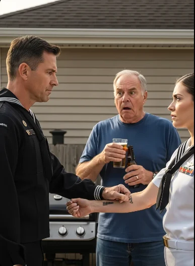 I had arrived straight from a formal ceremony in Washington, still wearing my Navy dress whites because I hadn’t had the energy—or the patience—to change. The uniform stood out awkwardly at a casual barbecue, but exhaustion overruled self-consciousness. Sunlight reflected off the insignia on my chest, catching more attention than I intended.