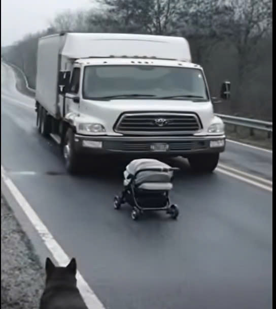 Time slowed as I struggled against metal that refused to give. Inside the wreck, I heard frantic movement, then silence. Seconds stretched painfully long. Then, through the haze, Cooper emerged, backing carefully through broken glass. Gently clamped in his mouth was the handle of a reinforced baby carrier. He dragged it across the road, ignoring his own injuries, until he reached the grass well away from the fire.