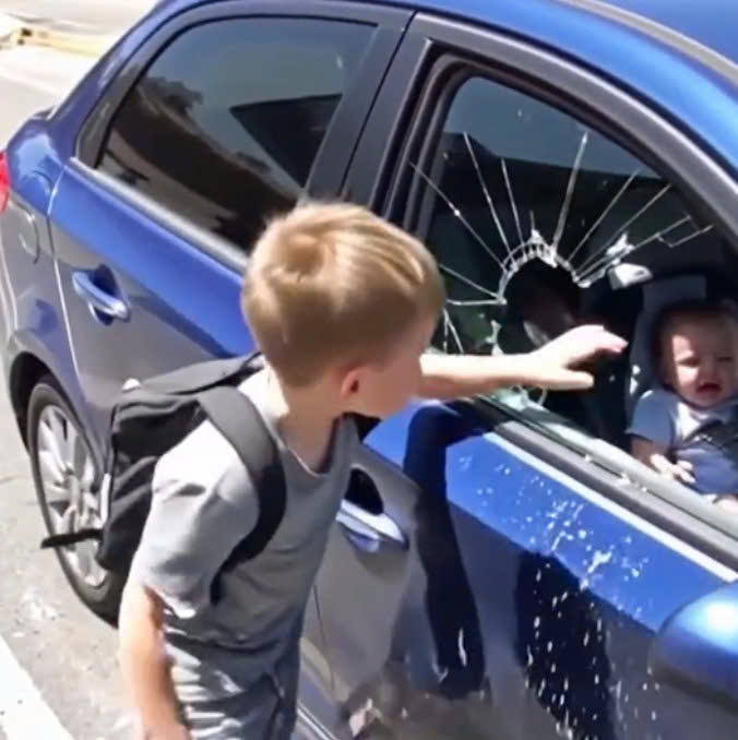 The parking lot felt eerily quiet when I reached the red car. Sweat slicked my palms as I checked the doors. Locked. I looked around for help, but no one else had noticed yet. The baby let out a faint sound, and that was all the confirmation I needed. I thought briefly about consequences, about getting in trouble, but the choice was already made. I grabbed a nearby rock and struck the passenger-side window. The glass shattered, scattering across the pavement.