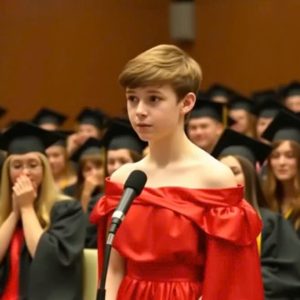 During the graduation ceremony, my son walked onto the stage wearing a puffy red gown that immediately drew attention. I could feel the shift in the room before a single word was spoken….