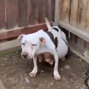 It all began one quiet afternoon when a kindhearted woman discovered a frightened pitbull curled up in the corner of her garden. The poor dog, later named Mae, was heavily pregnant—about eight and…